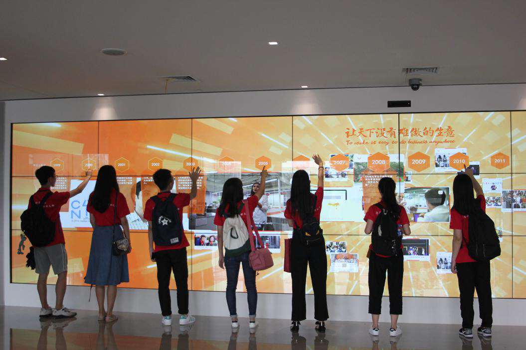 在阿里巴巴总部的接待大楼,一进门迎面而来的就是铺满整面墙的触摸屏,上面用时间线和视频资料动态的展示了阿里迄今为止20年的成长历程中重要的时间节点和历史事件。