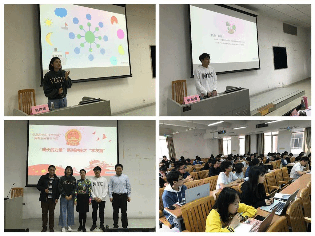 近日,信息学院打造的“成长的力量”系列讲座陆续开讲。讲座分为“灯塔篇”“校友篇”“学友篇”“职友篇”等,广泛邀请优秀的智者、师者、职者和学友、校友,以分享会、交流会、讲座等多种形式与同学们见面交流,启迪智慧,浸润心灵,增强大学生生命的韧性,发掘成长的力量,发挥先进典型的示范引领作用,打造新时代学生的精神标杆。参加的学生则纷纷表示,自己在与这些优秀的人面对面的交流和聆听中,从最朴实的言语和亲身的经历中,获得了不少真切、实用的人生感悟,进一步激发了自己向优秀学习的意识和动力。