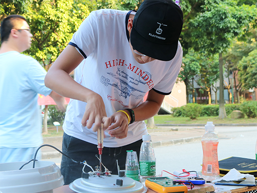 养精蓄锐后,精力充沛的活动成员们于下午两点继续进行义修活动。校道旁,他们检查电器熟练进行修理操作;宿舍楼,他们为同学提供优质上门服务。在他们严谨且耐心,热情而负责的工作态度下,来修理电器的同学老师们笑容满面的带着自己的电器离开。