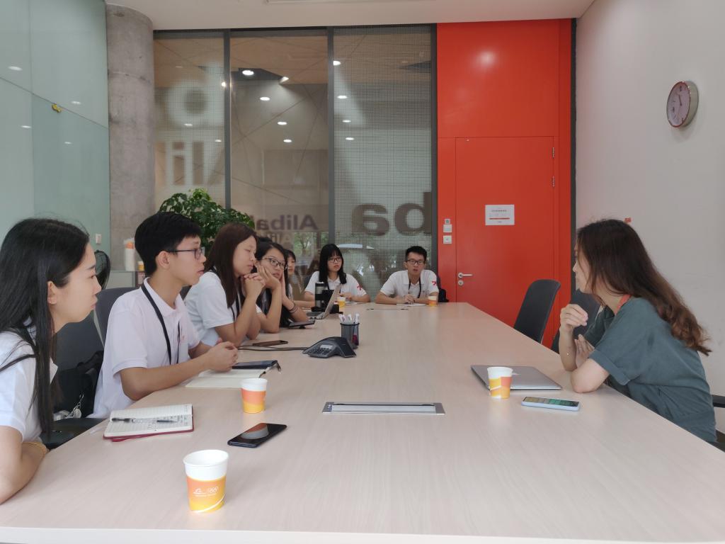 走进滨江园区,同学们受到了广外信息学院12届毕业生林琳,现阿里国际贸易事业部高级产品专家的热情接待,参观学习从了解阿里、探寻阿里、校友交流几个方面展开。