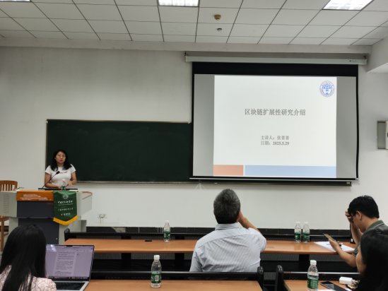 接下来,张菁菁博士为同学们带来了关于区块链扩展性研究的专题报告。她从如何阅读科研论文入手,逐步引入区块链可扩展性的问题,重点介绍了区块链共识机制与支付通道技术在扩展性提升中的关键作用,帮助同学们建立起对该领域研究脉络的清晰认识。随后,唐洪滔学长分享了题为“一种基于混合卷积神经网络的多模态智能合约分类方法”的研究成果。他聚焦于区块链与智能合约的结合,提出了基于功能进行智能合约分类的研究思路,展示了多模态特征融合在智能合约分析中的应用潜力。