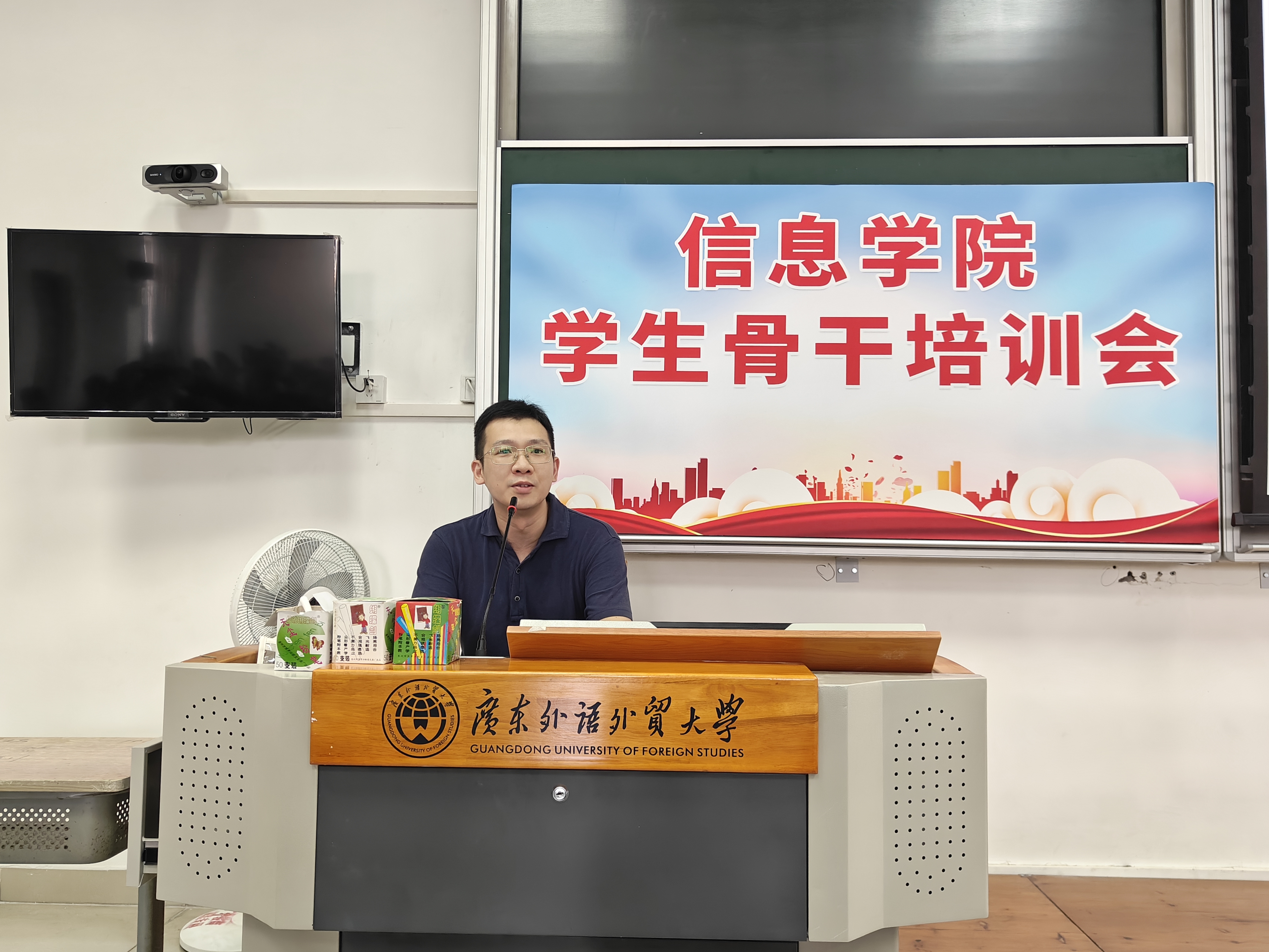 本网讯,2024年10月17日下午,信息学院在大学城校区教学楼G207举办“学生骨干培训交流会”,校团委副书记赵继伟、保卫部副部长朱永海和辅导员董婷作主题报告,对学生骨干进行培训。信息学院党委副书记刘丽玉、学院全体辅导员及全院学生骨干300余名参加培训,会议由信息学院团委宋鹏飞主持。