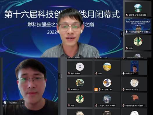 本网讯 12月8日,信息科学与技术学院(以下简称“信息学院”)第十六届科技创新实践月(以下简称“科技月”)闭幕式暨颁奖典礼成功举办,本次闭幕式以线上方式进行。信息学院院长王常吉,副院长李霞、谢柏林、王连喜,党委副书记肖锋、各系部主任、学院全体辅导员、2009级校友沈东雄、2010级校友邱钊海,以及两百多名同学参加了闭幕式。