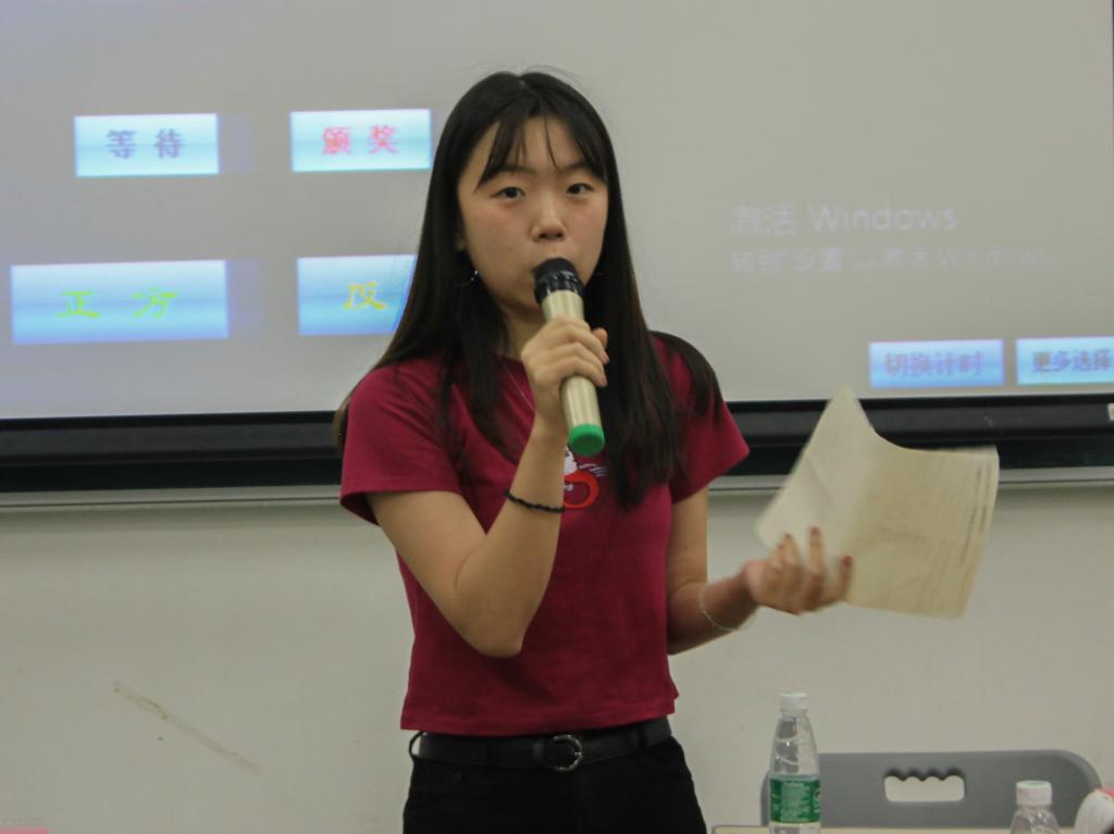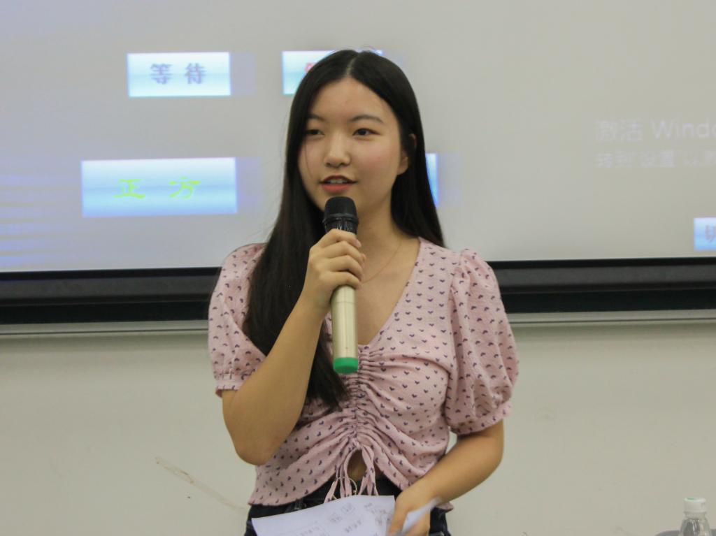 最后,18级广东外语外贸大学南北校校辩论队队长岑慧敏,发表自己的观点即“台下充分的准备,场上的随机应变是一个辩手应具有的基本能力”。