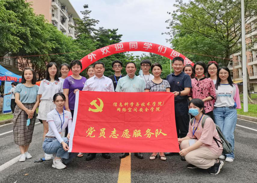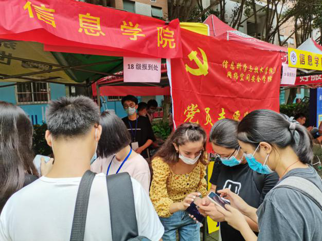 本网讯 9月5日,信息科学与技术学院\网络空间安全学院迎接同学们返校工作如火如荼地开展,为向阔别校园半年的同学们提供温暖关怀,做好疫情防控工作,学院为每位同学准备了防疫大礼包,包括免洗洗手液、消毒液和口罩。同学们有序返校,学院的教师党员志愿服务队、学生志愿者在服务岗位上紧张忙碌。