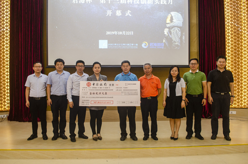 本网讯 2019年10月22日,广东外语外贸大学信息科学与技术学院/网络空间安全学院(以下简称“信息学院”)“君海杯”第十三届科技创新实践月(以下简称“科技月”)开幕式于广东外语外贸大学南校区八角楼顺利举办。出席本次活动的领导和嘉宾有拓尔思知识图谱研究院院长臧根林、广州君海网络科技有限公司人力资源副总裁杨昊、我校学生处副处长叶开、校团委副书记欧少彬、校就业指导中心副主任娄会东,信息学院院长蒋盛益、副院长谢柏林、李霞,院党委副书记肖锋以及信息学院全体辅导员。