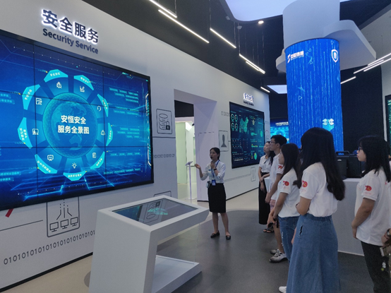 在安恒创新体验中心参观学习过程中,张海泳副院长与讲解员一同,为我们详细介绍了安恒的公司发展历程,丰富的核心技术及其应用。