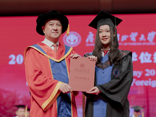 之后,隋广军书记为金融学院、英语教育学院和信息科学与技术学院学位获得者授予毕业生学位。