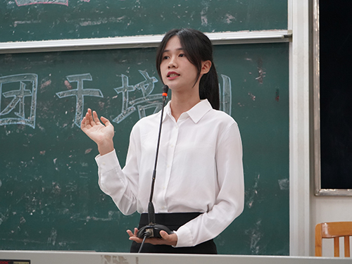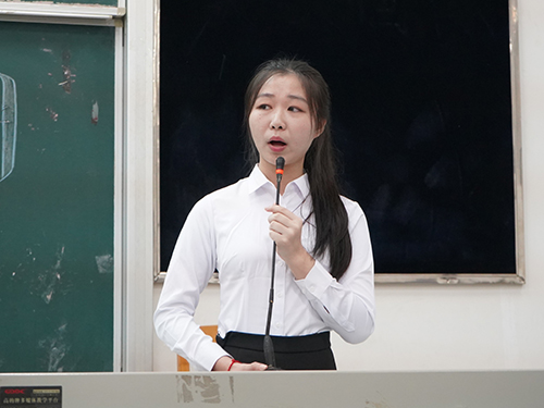 在主持人简单的开场白后,大会正式开始。首先是张文萃的讲话,她由自身经历出发,告诉我们要在大学生活中拓宽自己未来的可能性,选择做一个指引者、领导者。大家都从简短而又蕴藏深厚的讲话中感悟到了许多。