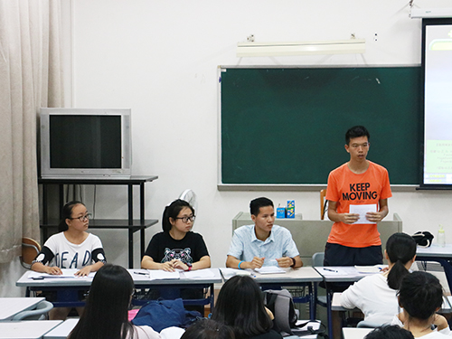 本网讯 10月13日晚,广东外语外贸大学信息科学与技术学院第三届“新生杯”辩论赛在教学楼如火如荼地进行。其中,计算机1705班班队和计算机1706班班队就“短期支教利大于弊/弊大于利” 展开激烈论战。出席此场比赛的嘉宾有信息学院15级队长林卓群,法学院16级队员赖思行,信息学院16级队员余碧容。正方计算机1705班班队的观点为“短期支教利大于弊”,反方计算机1706班班队的观点为“短期支教弊大于利”。