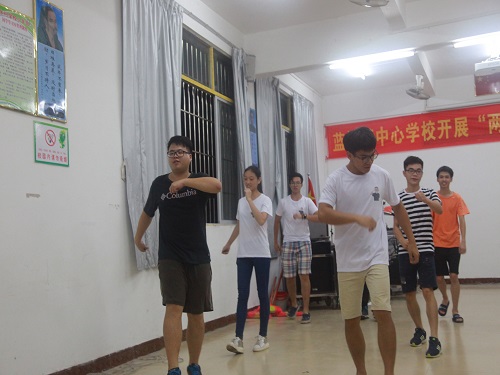 由于大家都没有舞蹈基础并且时间比较紧迫,所以只能照着视频依葫芦画瓢,虽然舞蹈有一定难度,有些队员们的动作不是很协调,但是他们都在一遍一遍的努力练习着。队员们对这次毕业典礼的表演十分重视,除了合练的时间以外,队员们有空的时候也会自己练习,熟悉着歌曲的律动。有些同学甚至练习到晚上十一点才回到宿舍休息,只为了给这次三下乡活动画上一个圆满的句号。