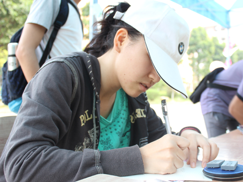 “暖心快递”别出心裁,设立了一个时间信箱。写信者将要对未来自己说的话写在信封上,标明寄回的时间,生活部的下一任干事将在半年、一年等特定的时间里将信件重新交到写信者手中,让未来的自己看到现在留下的话语,体会曾经的心境。让文字穿越时空,这样一件浪漫的事情吸引了众多文艺青年的注意力,让“暖心快递”现场气氛变得更加活跃。