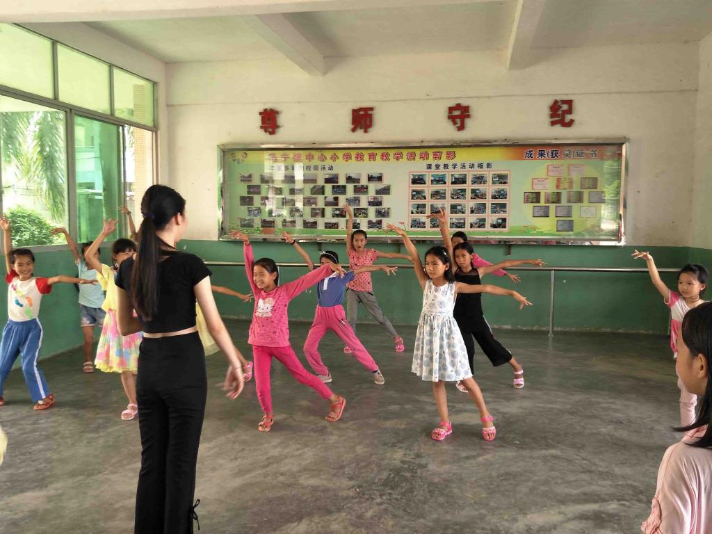“翩如兰苕翠,婉如游龙举。”舞步生莲,翩跹若仙。舞蹈课上,义教组组员魏紫烟为孩子们献舞一支,她的脚步轻盈,衫随风舞,恍若舞于云端。曼妙的舞姿吸引了孩子们的注意。在她的影响下,原本有着些许吵闹的孩子们,也都屏息凝神,生怕错过了一个细节。一支舞毕,学习舞蹈仿佛已经成为了孩子们的最大愿望,他们认真揣摩着舞蹈的一个个细节,也希冀着可以拥有那般婀娜的舞姿。