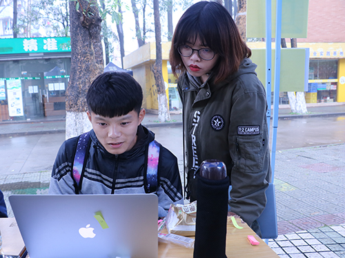 同学们前来填写登记表,说明自己电脑出现的故障或想要安装的软件