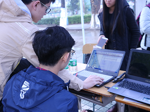 本网讯 3月11日,信息科学与技术学院团委学生会Light志愿者协会电脑义修队联手ASUFS义修队在校学生会生活部的协助下在我校北校区校道进行爱心义修活动。(以下Light志愿者协会简称为志协,两组义修队伍均简称为义修队。)