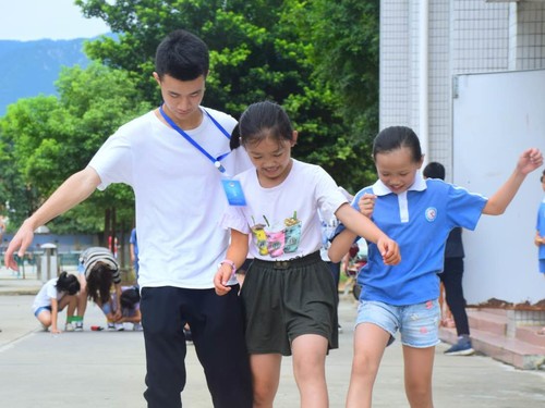 本网讯 2018年7月13日,是广东外语外贸大学信息科学与技术学院七月辰光服务队来到清远清新区三坑镇中心小学的第四天。近年来,健康体育、个性体育、快乐体育、趣味体育已经成为一种新的体育发展方向。因此,为了让孩子们强健体魄、增强凝聚力,今日,在清远市清新区三坑镇中心小学,七月辰光服务队首次开展了“乡村少年宫”趣味运动会。在中心小学各领导的支持下,在队长们的带领下,趣味运动会有序地进行。