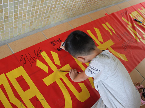 最后,李林珍老师引导同学们走出教室,邀请同学们有秩序地在禁毒教育横幅上签上名字,以示坚持杜绝毒品、宣传毒品教育的决心。