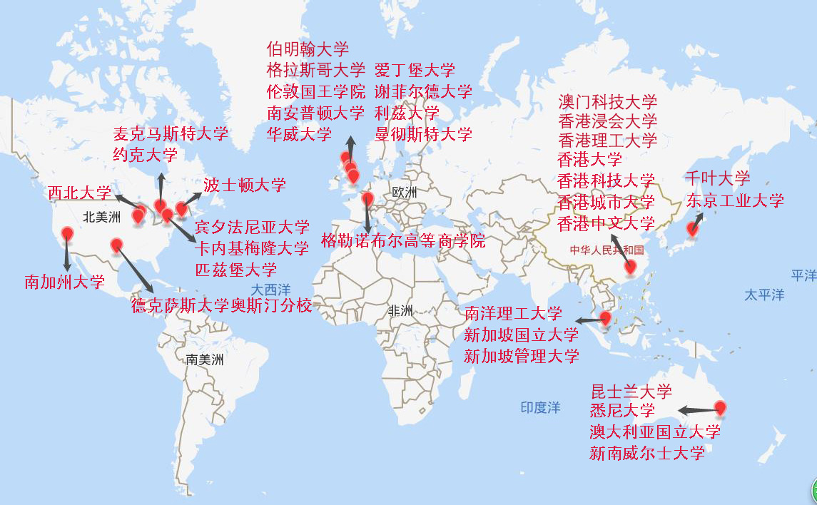 2018-2023年毕业生主要海外留学院校分布