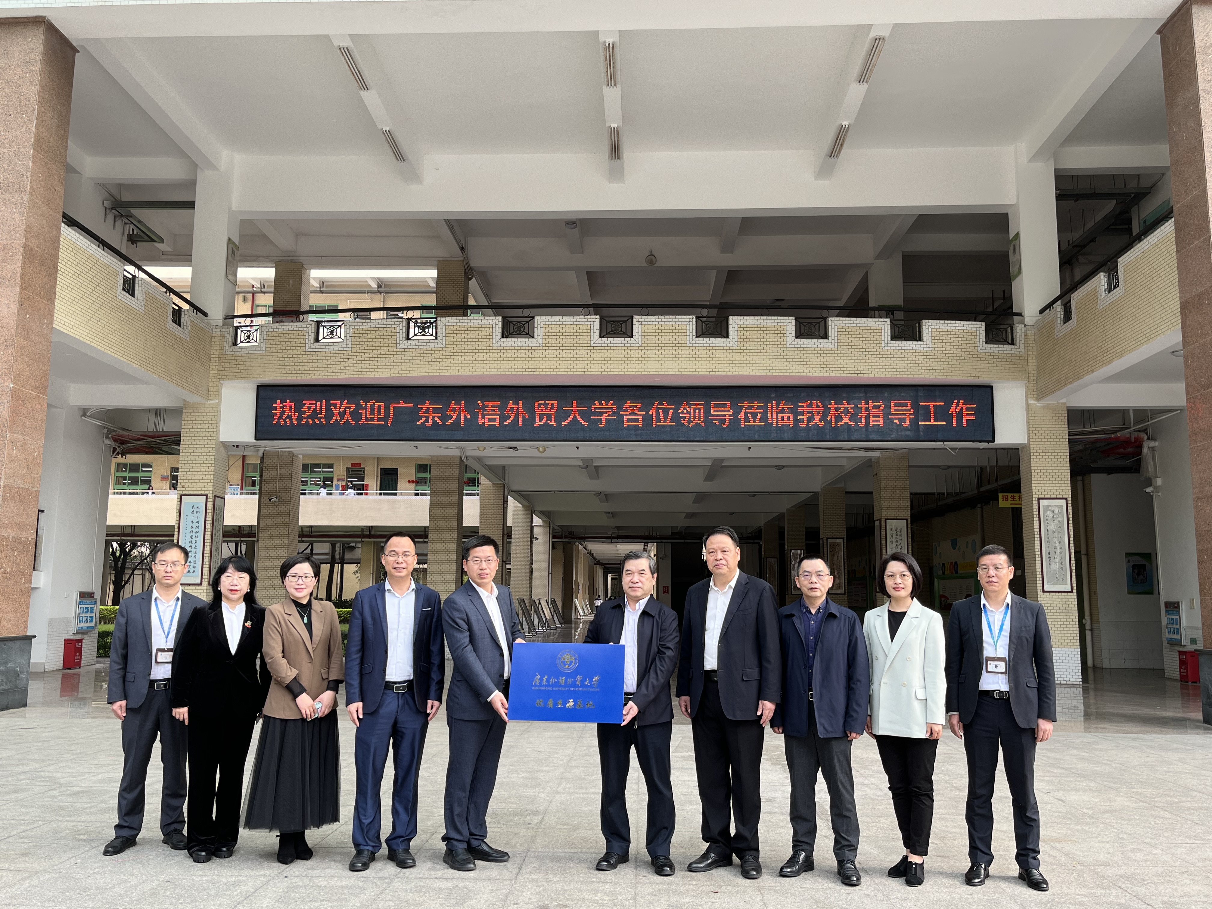 本网讯 3月9日,我校党委常委、副校长焦方太率领教务部副部长邓丽君、我院院长王常吉、党委副书记刘丽玉、团委书记宋鹏飞等赴东莞市开展招生宣传工作。期间,焦方太副校长一行到访东莞市光明中学,两校签订了“优质生源基地”合作协议并举行授牌仪式;回访优质生源基地东莞中学松山湖学校,为高二级学生代表做广外宣讲报告并答疑。
