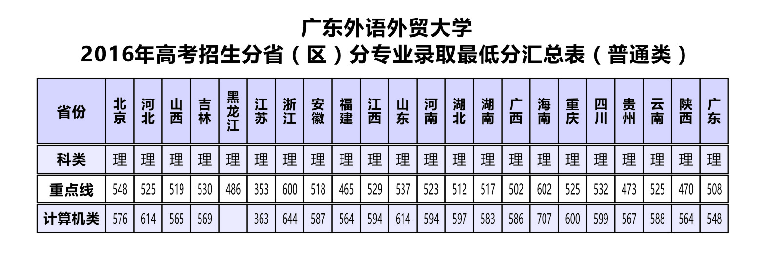 2016年高考招生分省份分专业录取最低分汇总表(普通类)