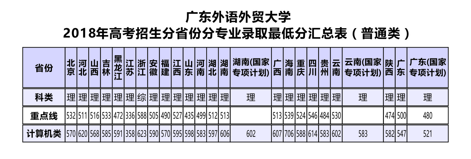 2018年高考招生分省份分专业录取最低分汇总表(普通类)
