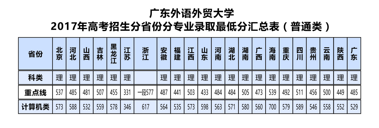 2017年高考招生分省份分专业录取最低分汇总表(普通类)