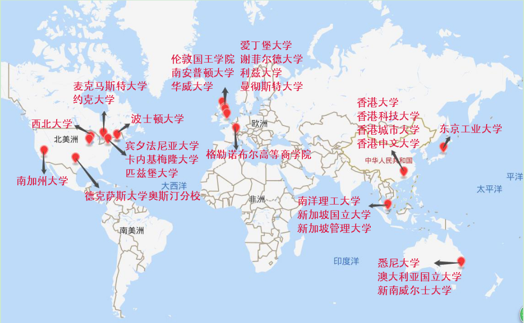 2014-2018年毕业生主要海(境)外留学院校分布