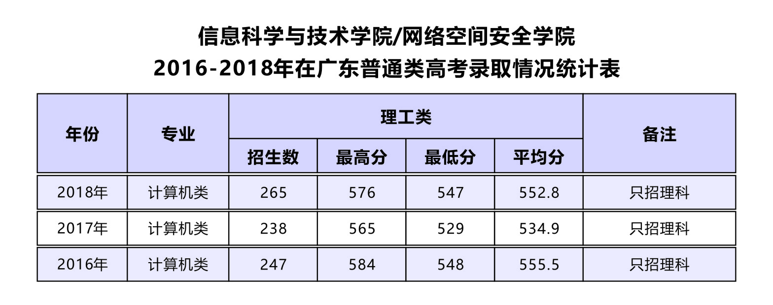 2016-2018年在广东普通类高考录取情况统计表