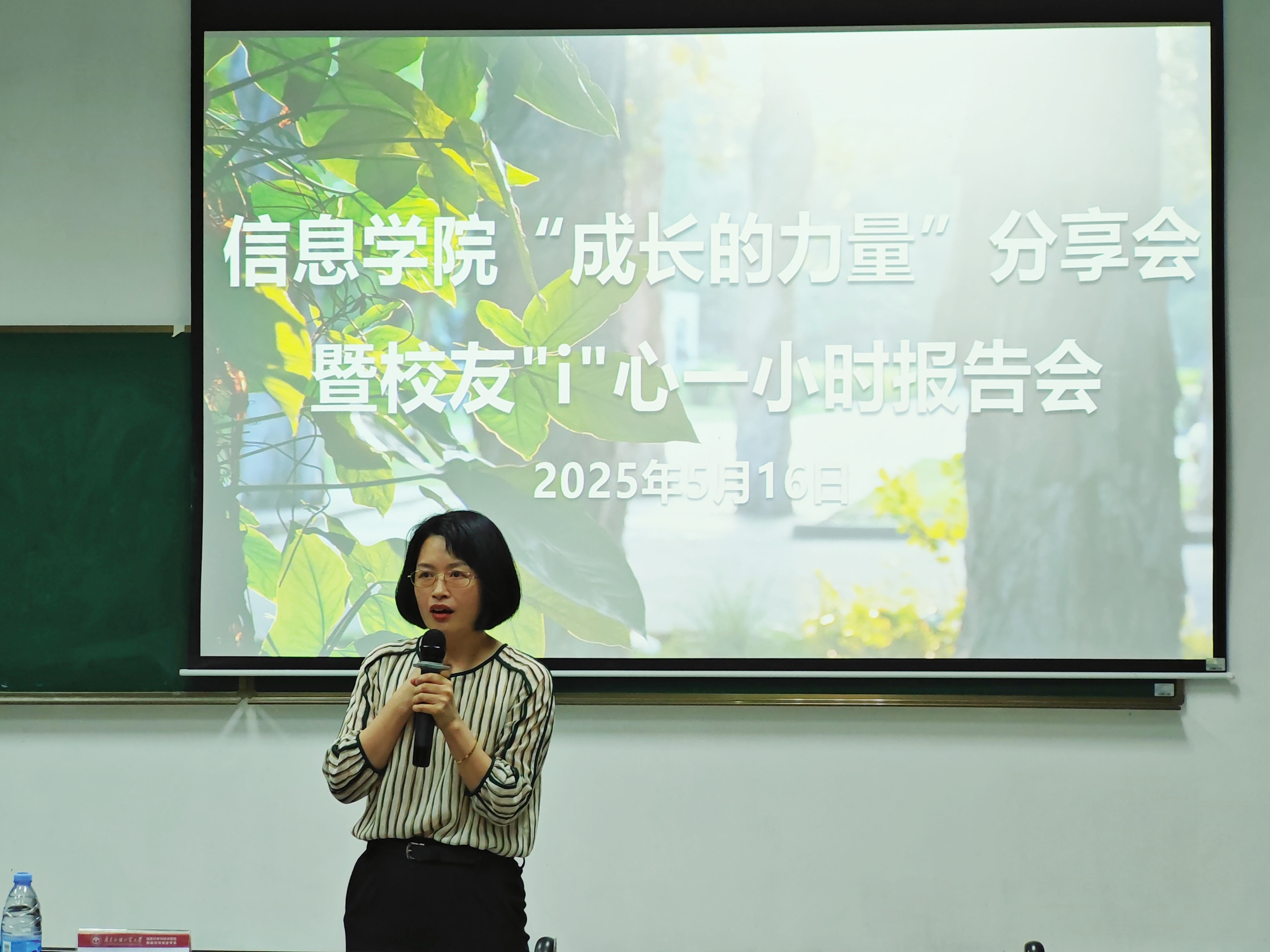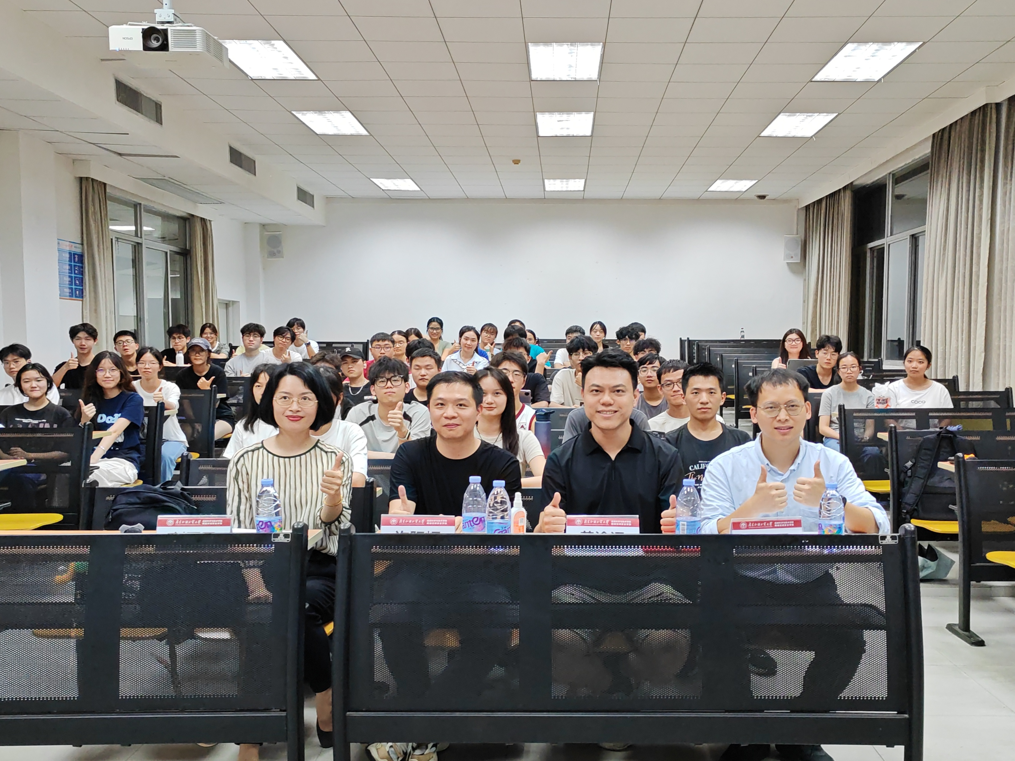 本网讯 2025年5月16日晚,信息学院在大学城校区实验楼C103开展校友"i"心一小时报告会。我院2007级计算机专业许阳辉校友、黄渝添校友返校做分享。本次报告会应校友们“小规模”、“深探讨”的要求,邀请信息学院本研学生100余人带着问题参加此次活动。交流会由辅导员卓智勇主持。