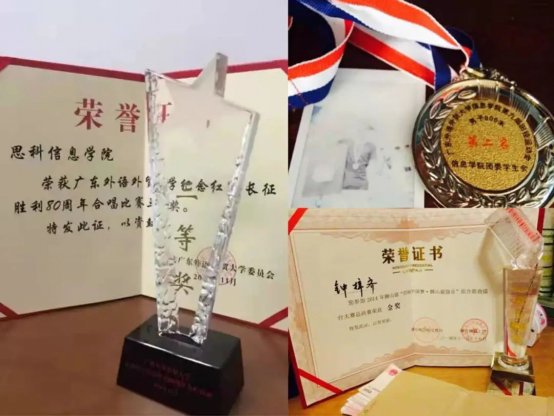 钟梓齐:我参加过艺术团的歌队、话剧队,参加过学院里的合唱团。然后信息学院每届的“秋之声”我都有参加,大一是亚军,大二大三是冠军,大四当了评委,校赛拿过两次季军。