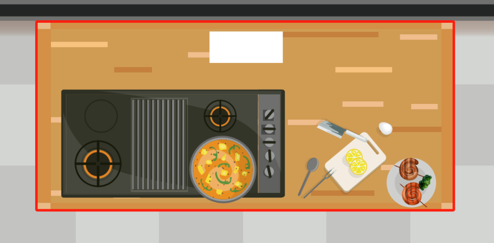 机器人在拿起食材前,食材的垂直投影需部分在黑色虚线框内,若超出黑色虚线框,该食材作废。