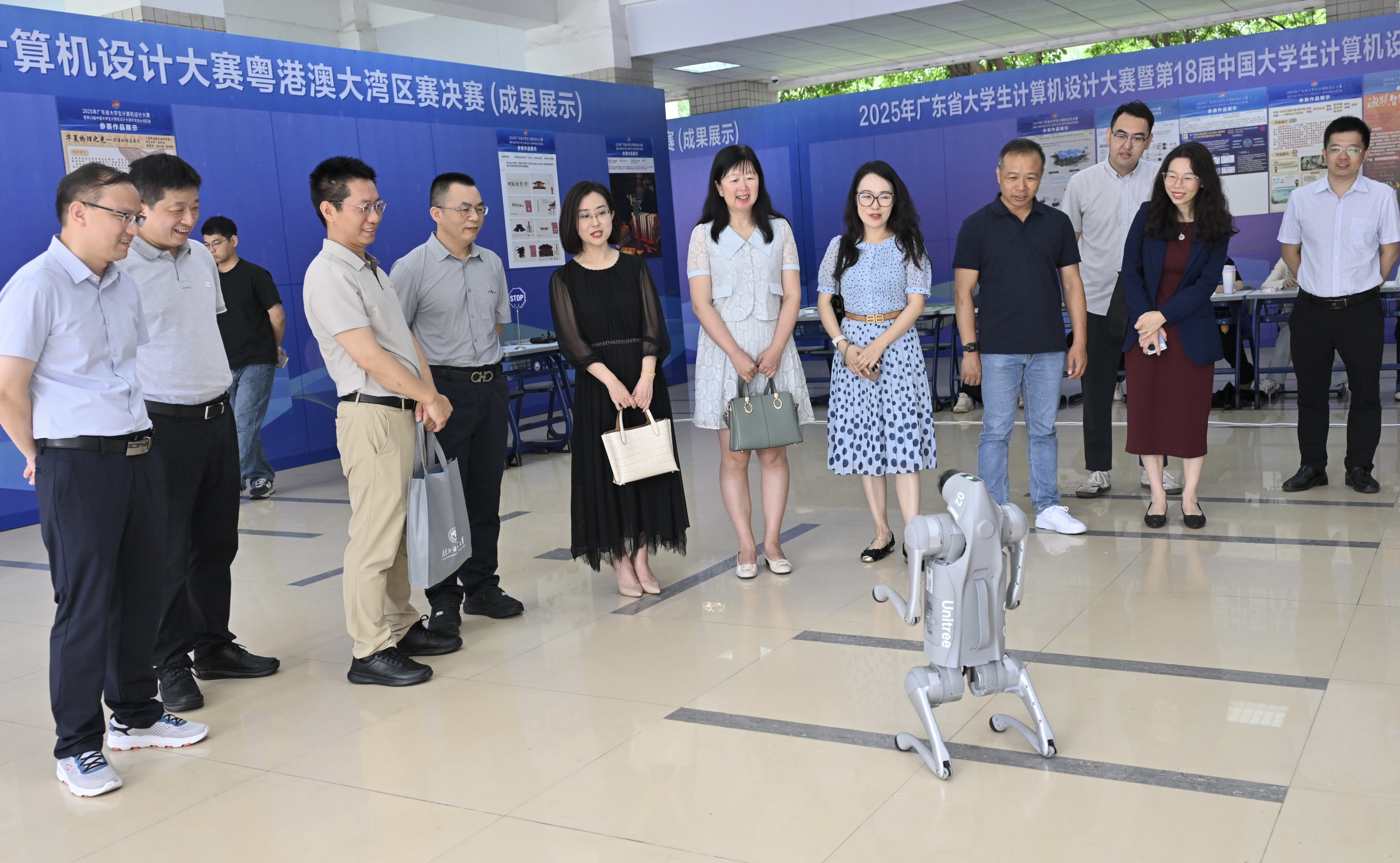 2025 年 5 月 24 日,由广东省教育厅主办的广东省大学生计算机设计大赛暨第18届中国大学生计算机设计大赛粤港澳大湾区赛决赛在我校成功举办,信息学院代表大学承担主要的赛务组织工作。广东省教育厅高等教育处处长姜琳,我校党委副书记葛小月,我校现代教育技术中心主任娄会东、我院党委书记柯晓华,我校党委宣传部、学生工作部、校团委、教务部和学院相关领导,以及90位专家评委、部分带队教师出席了决赛开幕式。开幕式由我院院长王常吉主持。