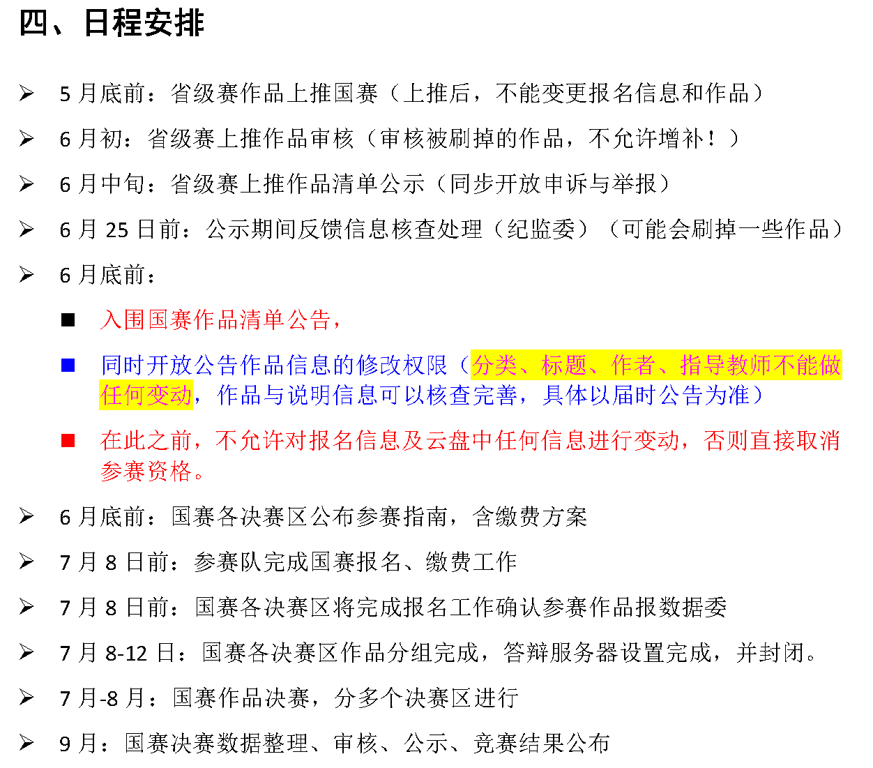 (4)根据国赛政策,上推后又弃赛的作品数量,将在明年省级名额中扣减对应作品数。若决定弃赛,请各校、各指导老师在5月31日中午12:00前