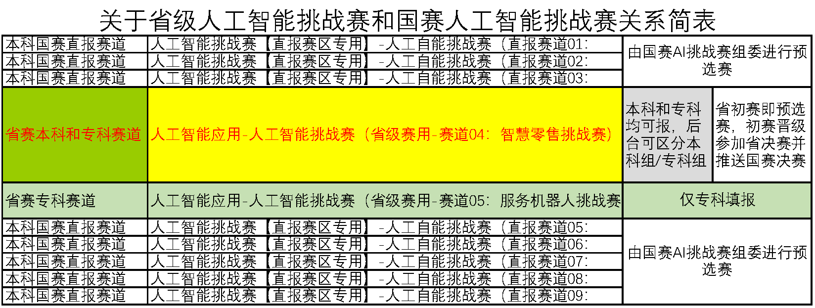 说明:本科院校团队若要参加国赛人工智能挑战赛的其他赛道,请选择“人工智能挑战赛【直报赛区专业】”赛项,并从中选择需要参赛的赛道(直报赛道01-03,05-09)。