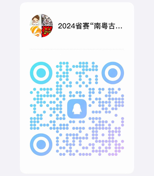 请扫描下方二维码,加入2024省赛“南粤古驿道”赛项交流讨论群,申请时须备注姓名及学校名。