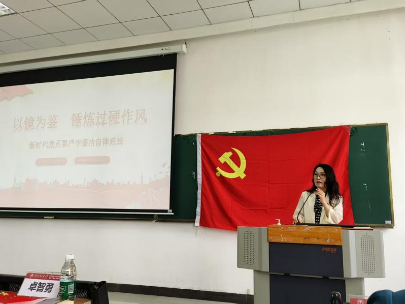 党课伴随着庄严的校歌拉开帷幕,学院党委书记柯晓华老师首先以《以镜为鉴 锤炼过硬作风》为主题,为全体党员同志带来一堂深刻的思政教育课。她从三个方面,以恰当的比喻,用好“显微镜、放大镜、望远镜”深度阐释如何围绕中央八项规定的各项要求,端正身为党员干部自己的一言一行,讲解立意深远、内涵丰富、发人深省。她特别指出,在毕业离校这个重要人生节点上,毕业生党员更要筑牢思想防线,把好廉洁自律的“第一道关口”,始终做到心有所畏、言有所戒、行有所止。这番讲话既饱含师长的殷切嘱托,又体现了党组织的严管厚爱,为全体毕业生党员上了一堂“生动的思政课”。