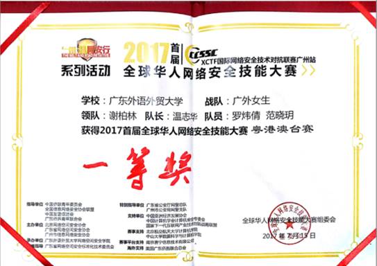 2017年全球华人网络安全大赛半决赛第一名、总决赛第五名(三等奖)