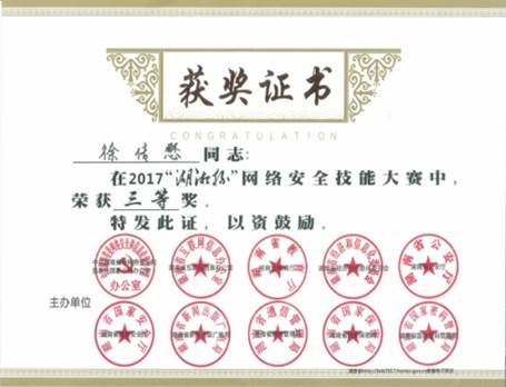 2017年“湖湘杯”网络安全技能大赛总决赛第四名(三等奖)