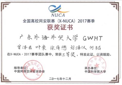 2017年全国高校网安联赛总决赛第七名(三等奖)(全国高校网安联赛为国内顶级赛事之一)